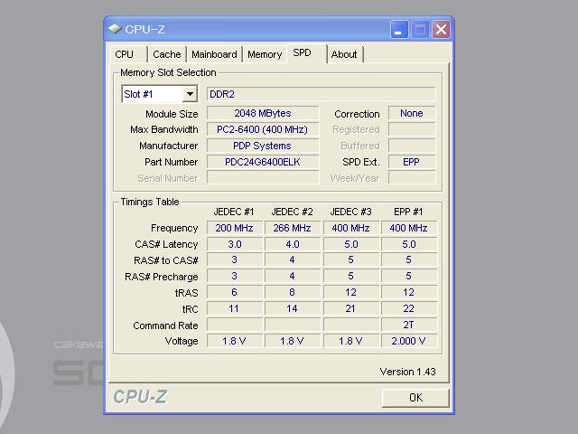 CPU-Zで確認するとメモリタイミングの所に、EPPがありますが同じCLで1.8VというSPDもあるのですね。EPPを気にしないならば、1.8Vの方を選ぶべきと思うのですが。OC耐性のチェックなのですが・・・・・・900前後でBIOSすら起動しなくなります。GIGABYTEのマザーでは1066MHzも行けたのですが、ASUS P5Eはメモリに厳しいようで他の2GBメモリも同程度で起動できなくなります。BIOSで改善を期待するしかないですね。
