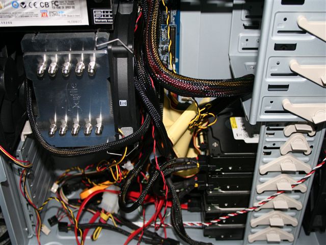 Scythe PROPELLERに、WD5000AAKS×3・WD3200JB×2を搭載した感じです。残りの拡張ベイは、5インチベイが2個・・・SATAポートが一個残ってますが、光学ドライブ買わないといけないのです。PATAは、WD3200JB×2に占拠されましたからwww