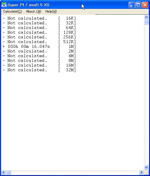 二種類のπ焼きを実行しましたが、結果は双方ともに16秒。まぁ、起動さえすればπ焼きで落ちるなんて事はほぼ無いので常用可能かは判別出来ませんがね。FSB 400はマザーが駄目なんですよね~、はやくDFIかASUSが出してくれないと購買意欲が薄れるよ。