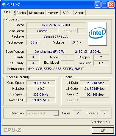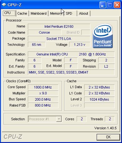 Pentium Dual-Core E2160をOCしてみました。