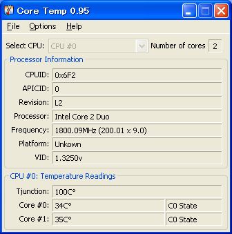 Core Temp 0.95 室温20℃前後