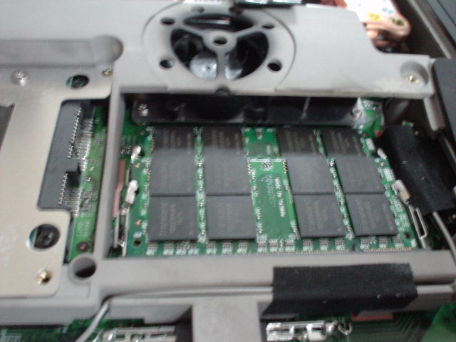 元々入っていた、512MBを取り外して1GBを2枚入れるだけです。難しい作業はなくて、10分も掛かりませんでした。筐体がCLEVO製というのも交換のしやすい理由でしょう、メーカー製はもっと内部が細かくなっていそうでやりにくいと思われ。